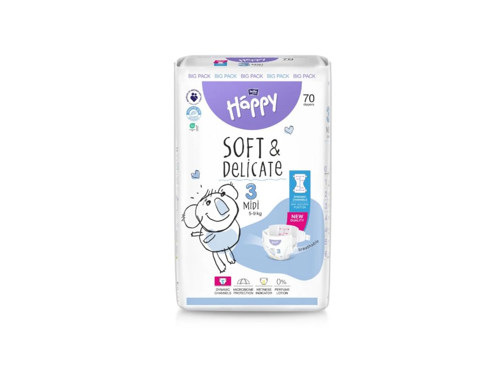 Happy Soft&Delicate 3 dětské pleny 5-9kg 70ks