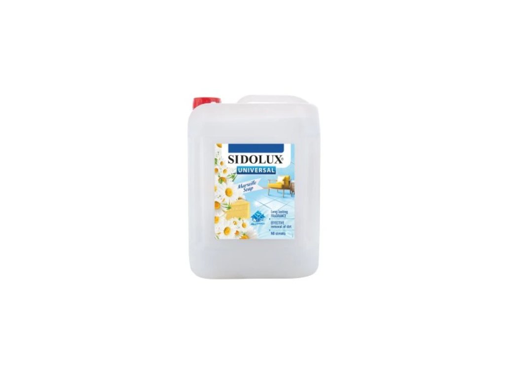 Sidolux parfemovaný univerzální čistící prostředek na všechny omyvatelné povrchy a podlahy s vůní Marseillského mýdla. Bohatá a přitom jemná vůně marseillského mýdla s lehkým nádechem heřmánku a jasmínu.